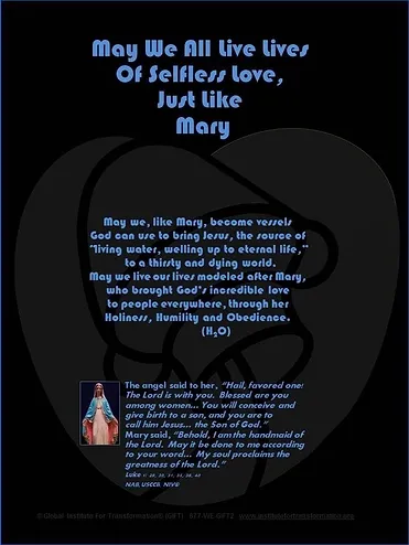 9) Regardless of our denomination, all of us Christians would do well to follow the example of Mary -- who was Holy, Humble and Obedient (H20).